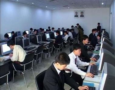朝鲜的学生正在通过电脑和网络查询文献信息资料