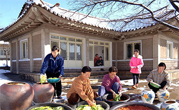 每年十一月是朝鲜腌制泡菜的时节。各地虽建有生产泡菜的工厂,但有很多家庭还是愿意自己腌制泡菜,因为泡菜是朝鲜历史悠久的传统饮食。